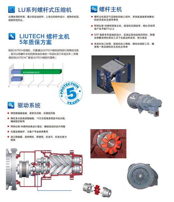 合理協調的布局,最少的運動部件,人性化的構件設計,全面提升LU系列空氣壓縮機的性價比。
