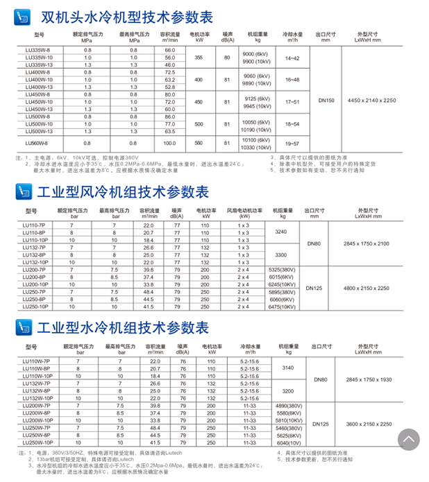 LU(250kW-560kW)系列螺桿式空壓機,依托集團公司先進的歐洲技術,考慮大型機組的適用范圍、運行經濟性、可靠性及操作維護的方便性而精心設計和組裝的。配置久經考驗的進口運動部件,整機運轉穩定、可靠。同時,針對中國環境工況專門改進適應性強,特別適合于氣量大的集中供氣場所。